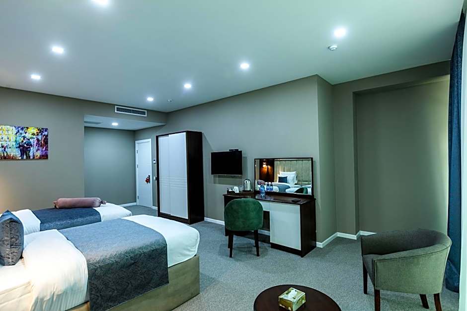 Sit back and relax in the comfort of soundproof rooms equipped with private bathrooms, free toiletries, and air purifiers for a refreshing stay. Indulge in delicious meals at the hotel restaurant, sip on a cocktail at the bar, or take in the city views from your room. For a memorable stay in Baku, book your room at Parallel Hotel where convenience and comfort await you.